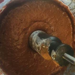In a food processor, add in the beets, coffee, egg yolks, dates, vanilla, cinnamon, coconut sugar, baking powder, and coco. Puree until the beets and dates are completely one with everything else. Add in the flour, and pulse just until the flour is combined, yet not tough.